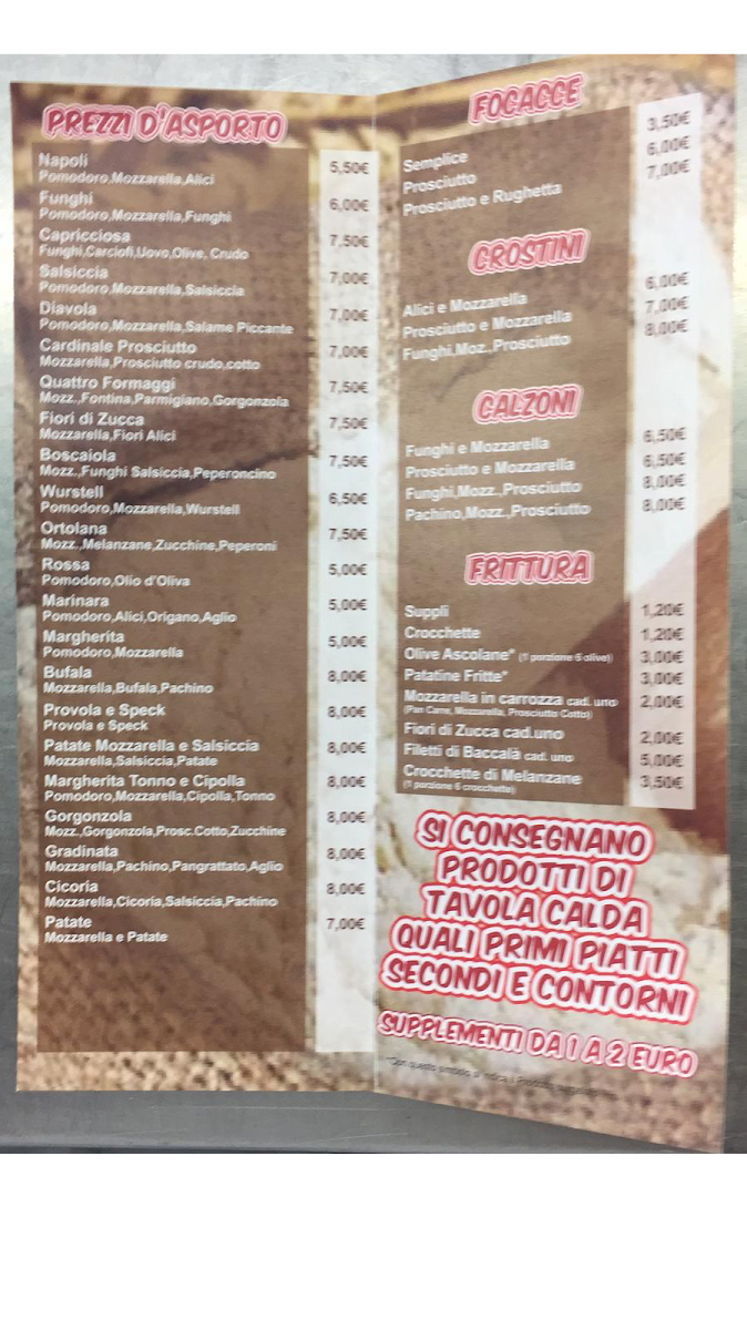 “ Pizza molto buona, sia al taglio che tonda, ben condita e digeribile, ottimi anche i fritti, con suppli fatti in casa e montanare sublimi. Prezzi nella media, locale che forse necessita una rinfrescata, unico motivo per cui non do 5 stelle. Il personale è inoltre molto gentile ed ho notato che oltre alla pizza fanno anche primi e secondi gustosi ”